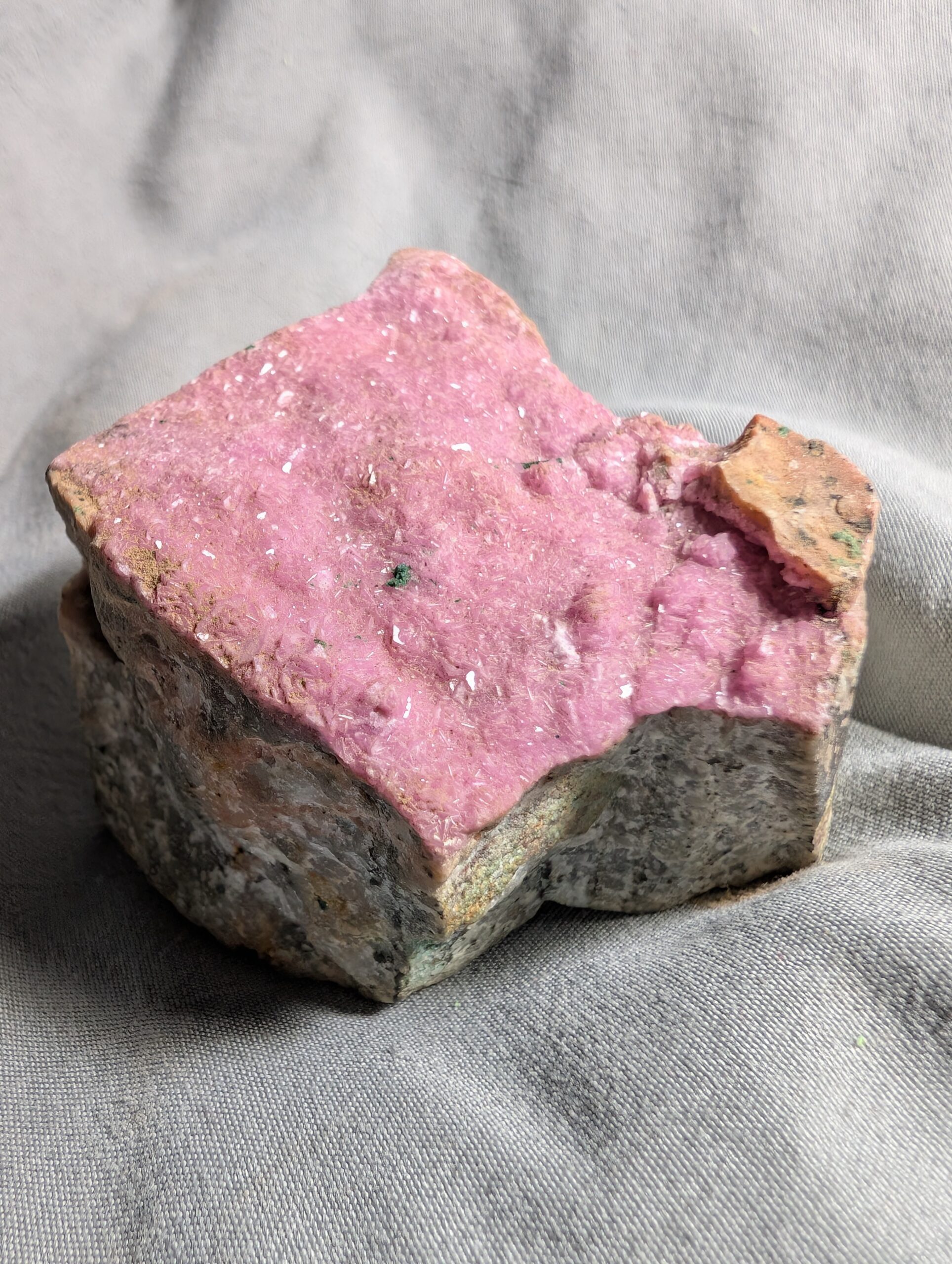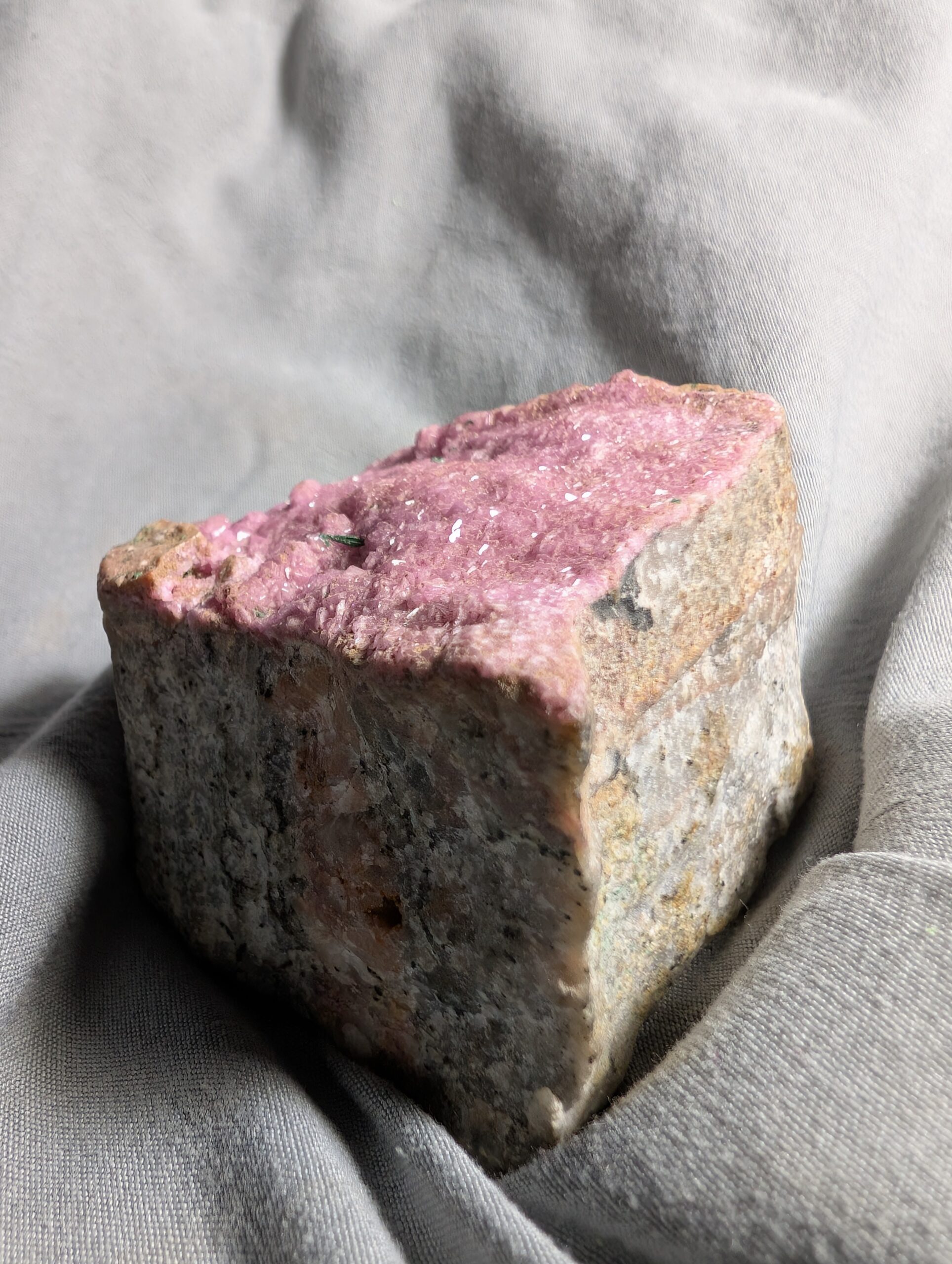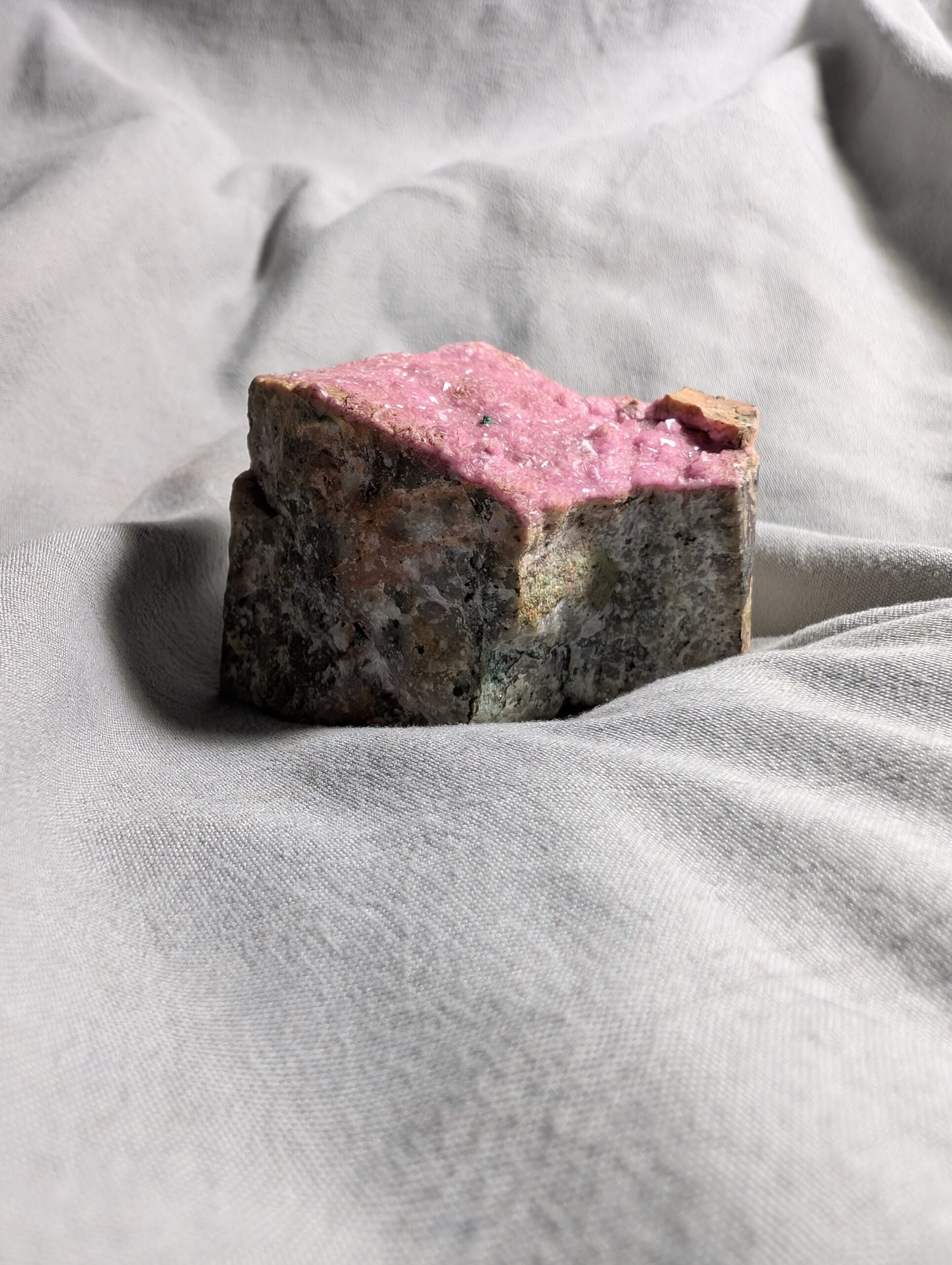 Hot pink cobalt included calcite looking like a slice of Barbie cake.