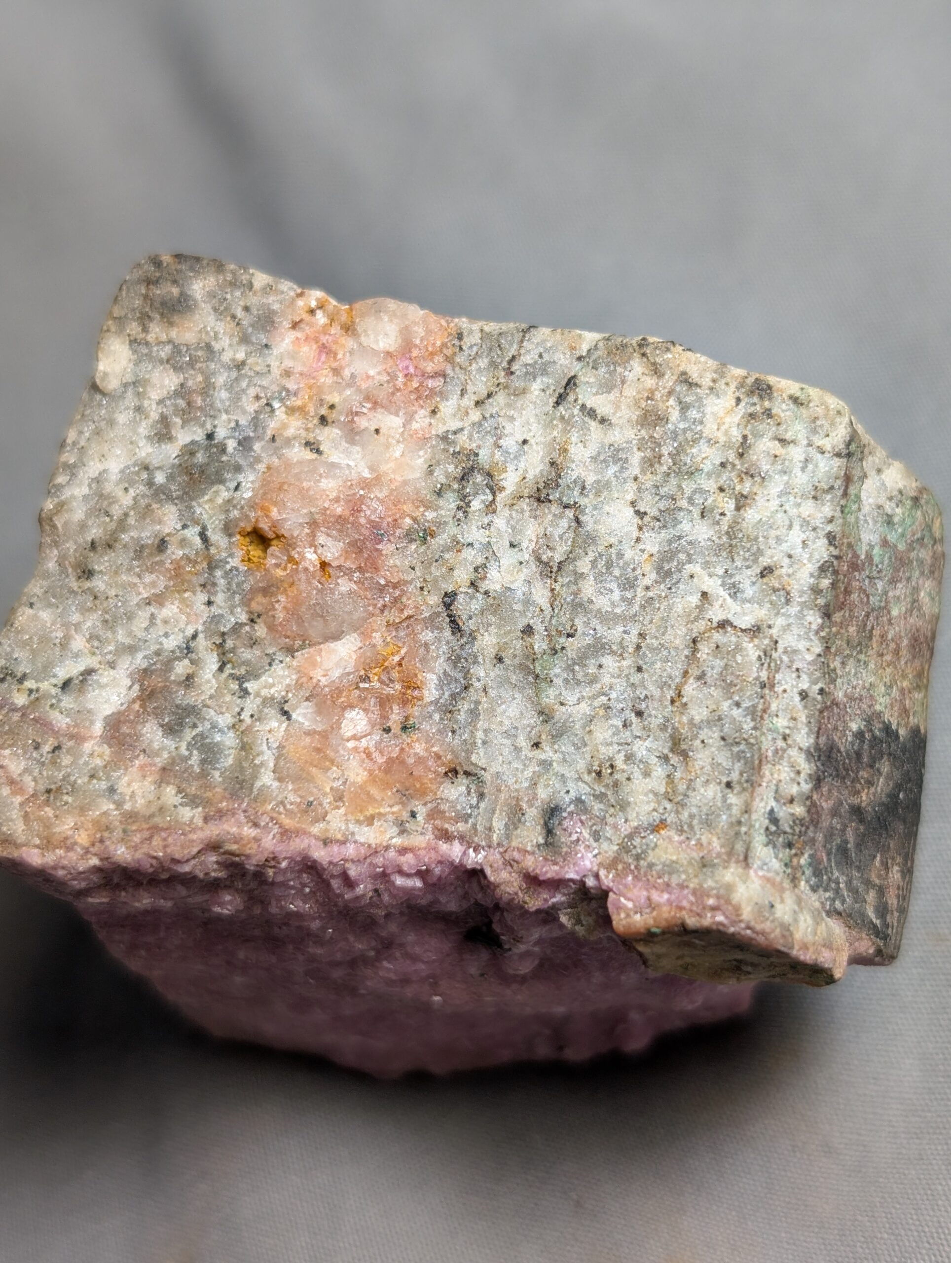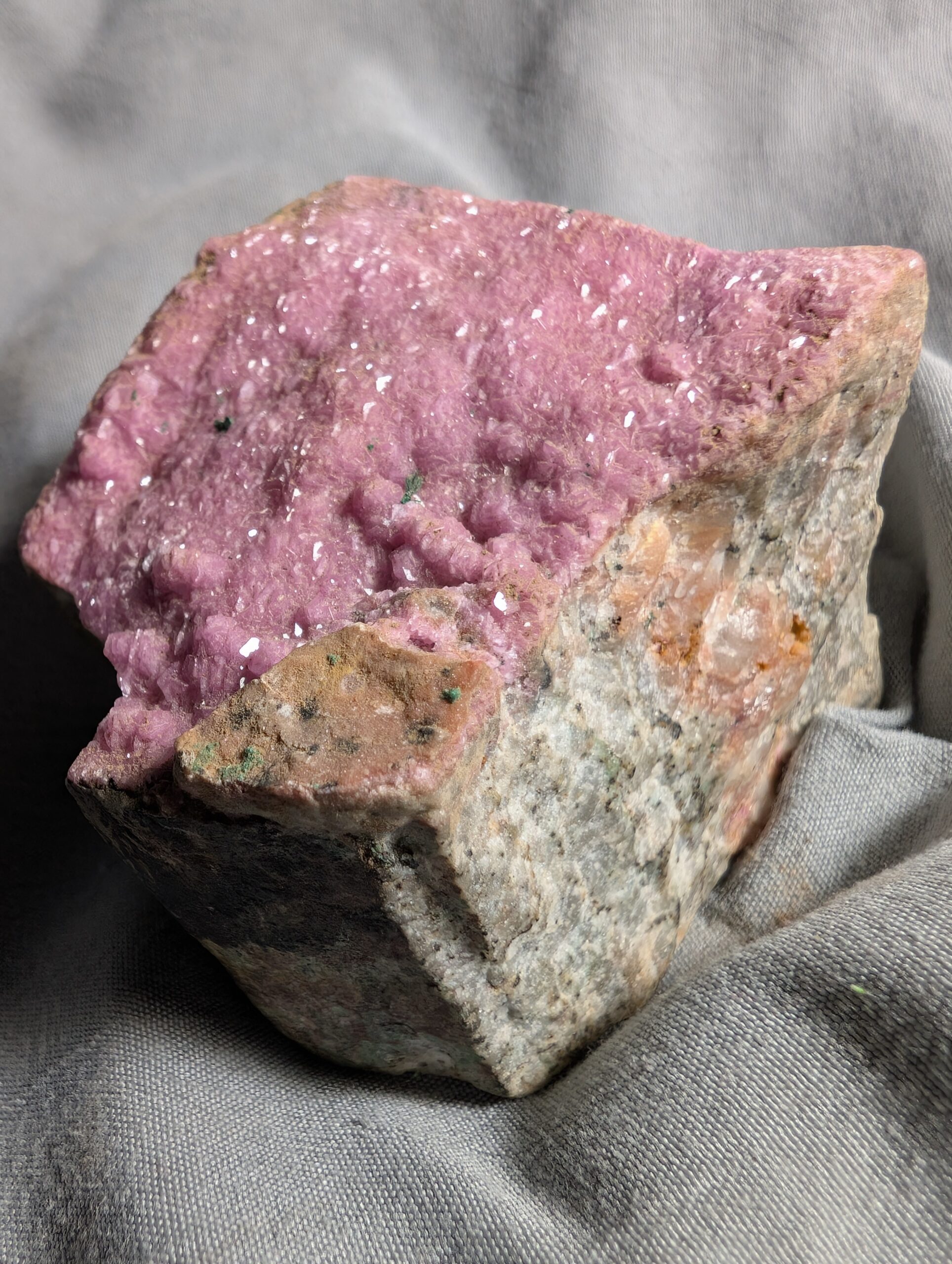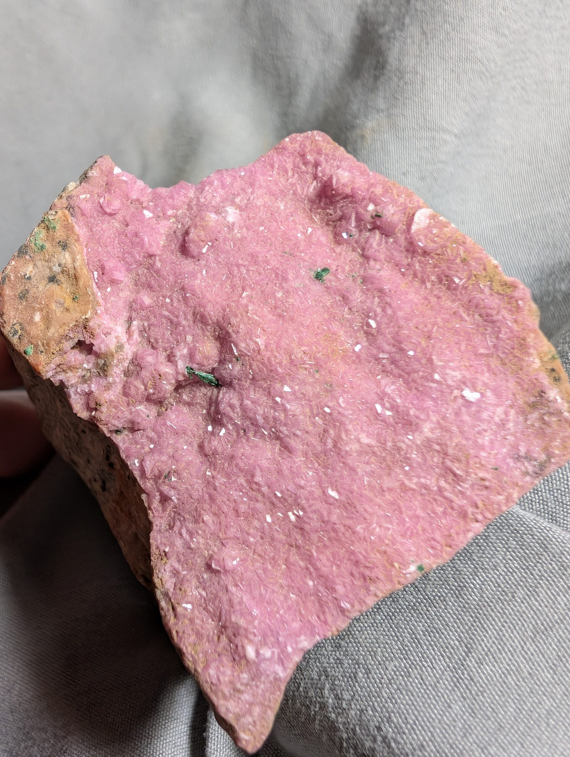 Hot pink cobalt included calcite looking like a slice of Barbie cake.